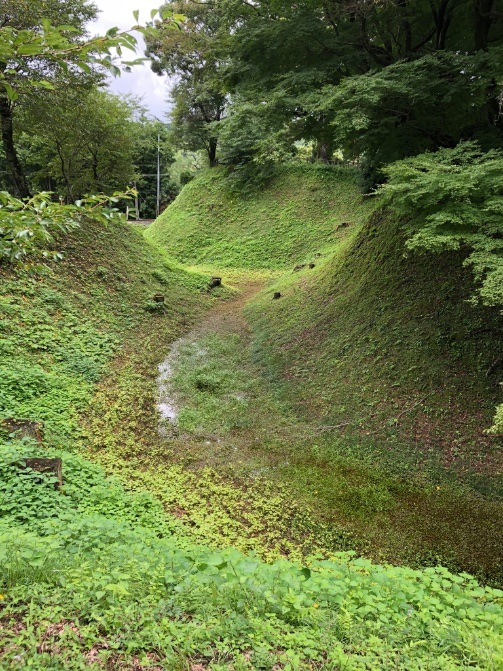 長篠城址は本丸跡、空堀や土塁などが残ってる