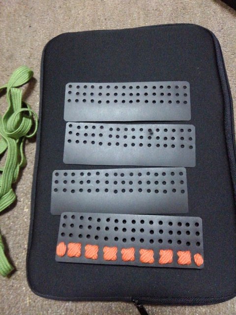 朝御飯食べて、岩崎城に行くまで甲冑ポーチの縅作業。