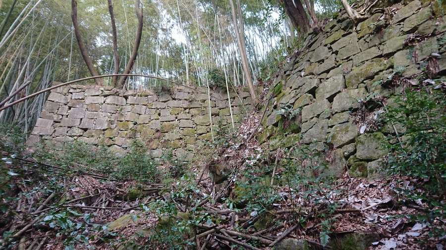 主郭部西側下の谷間の石垣です