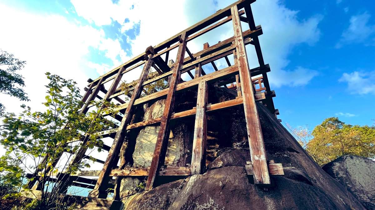 苗木城跡2017.11.19 一枚目は城ブームになってから建てられた櫓のような物。昔はこんもりした山だったがはげ山に妙な櫓ができた。霧は木曽川、朝日の紅葉、四枚目は城の石垣。廃城令で取り壊され、苗木は神道になりました。廃仏令。弱小… https://t.co/wtcsHzP2qZ