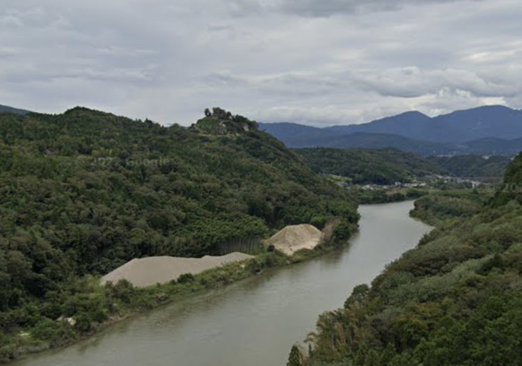 @nearly_equal110 苗木城からは木曽川を挟んで直線で1kmくらいの位置なのですが、何の表示もなく、岩が1つと木が1本立っているだけの不思議な場所でした。
