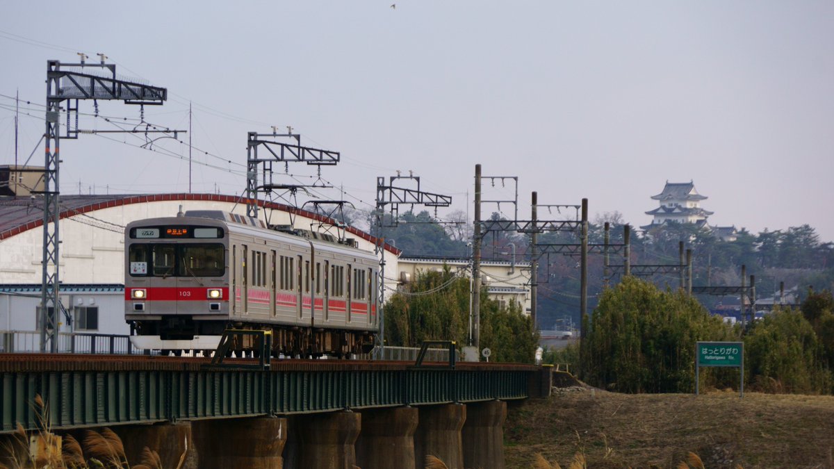 西大手駅~新居駅間にある服部川の鉄橋を渡る伊賀鉄道200系SE53編成(小温梅ちゃん&凪ちゃんコラボ新年HM)を撮影しました