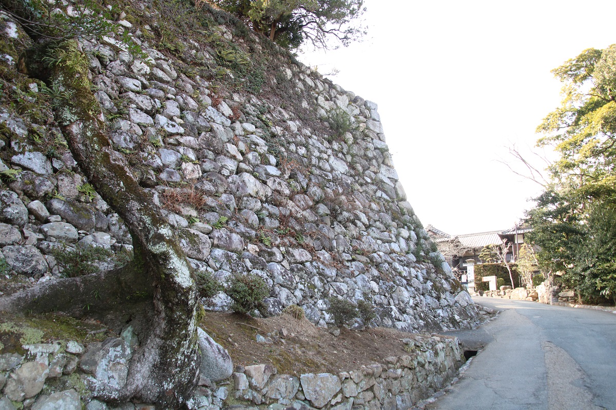 三重県松阪市の松坂城跡,裏門跡付近の石垣。いらかの波。二ノ丸跡の亀井改堂顕彰碑の前から旧松阪御城番長屋を見る(2006年1月1日撮影) https://t.co/kFXJOWwSe9