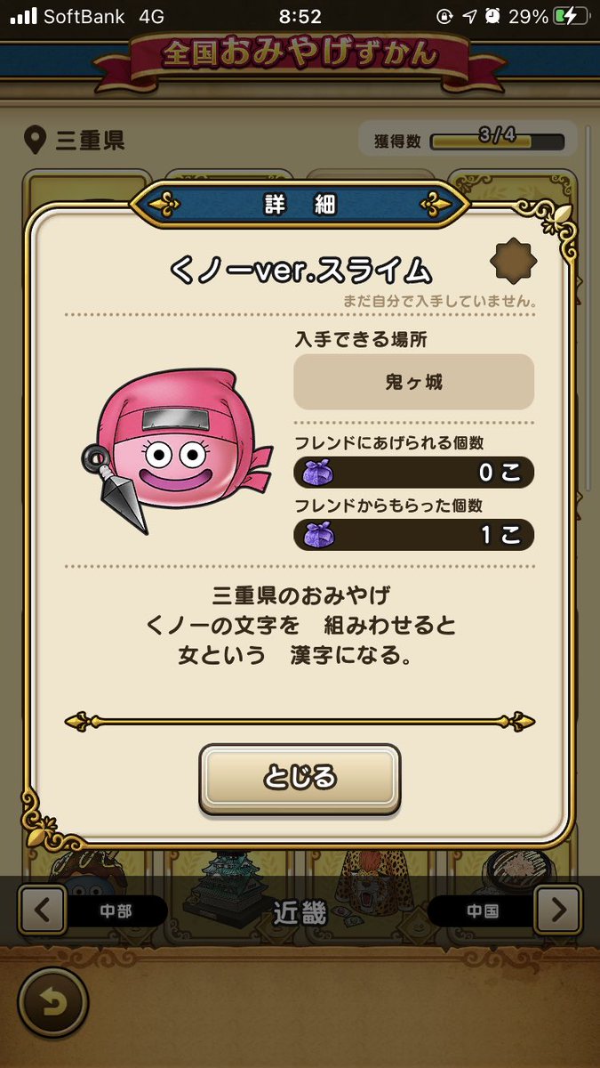もこちゃんから鬼ヶ城のくノ一スライムをいただきました