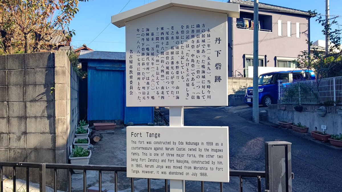 織田信長が今川氏の支配下にあった鳴海城を取り囲むように築かせた三つの砦の内のひとつ。砦には佐久間信盛、信辰兄弟が配された。砦は鳴海城の東に伸びた丘陵の東端にあった寺跡が利用された。堀と土塁を巡らせた造りであった。現在は… https://t.co/u5oU8gfV51