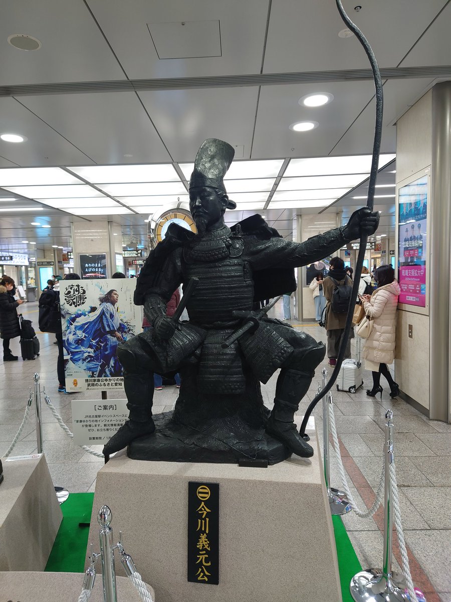名古屋駅に、桶狭間古戦場公園にある今川義元と織田信長の銅像レプリカが鎮座していました。