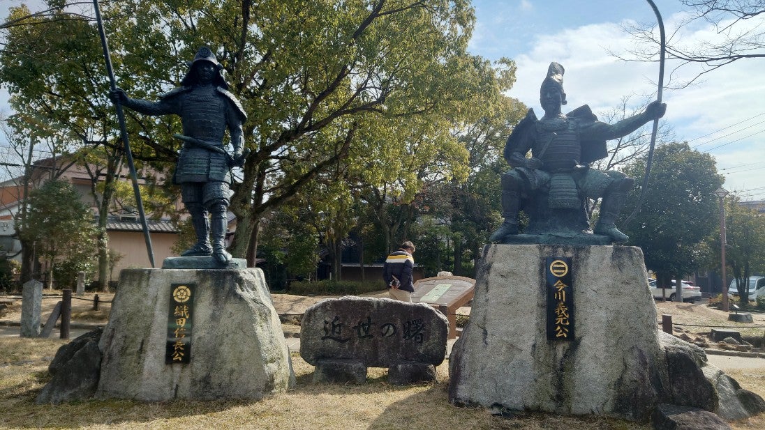 こっちは信長様や義元公の銅像が建ってたり、公園全体が桶狭間の戦いを表現してる。面白いのはアプリ使うとARでドラマが見える‘`,、(๑´∀`๑) ‘`,、’`… https://t.co/vHf63AFrqu