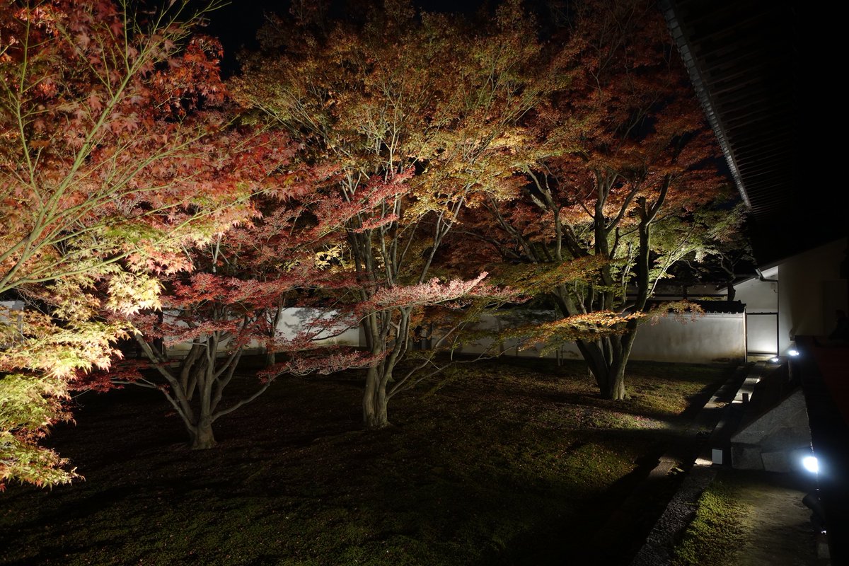 西陣、妙覚寺と妙顕寺の紅葉ライトアップ。妙覚寺はやや過ぎ、妙顕寺はやや足りず。明日の雨が良い方になりますように。 https://t.co/KO0WKT96KI