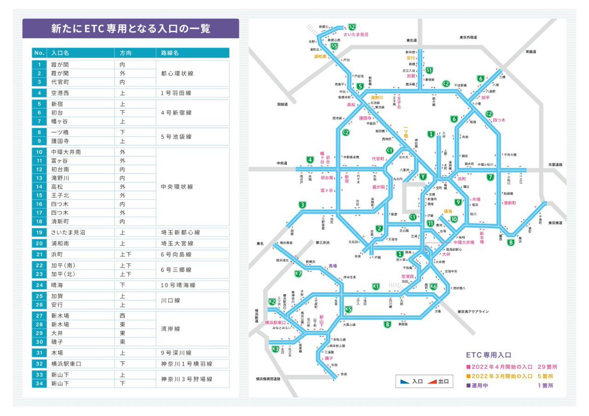 3/1(火)から一ツ橋、滝野川、浦和南、晴海、安行入口がETC専用に変わります