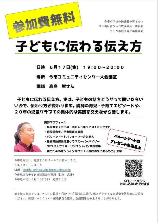 講演報告:子どもに伝わる伝え方(島根県出雲市今市地区青少年育成協議会)