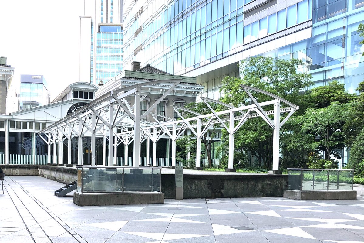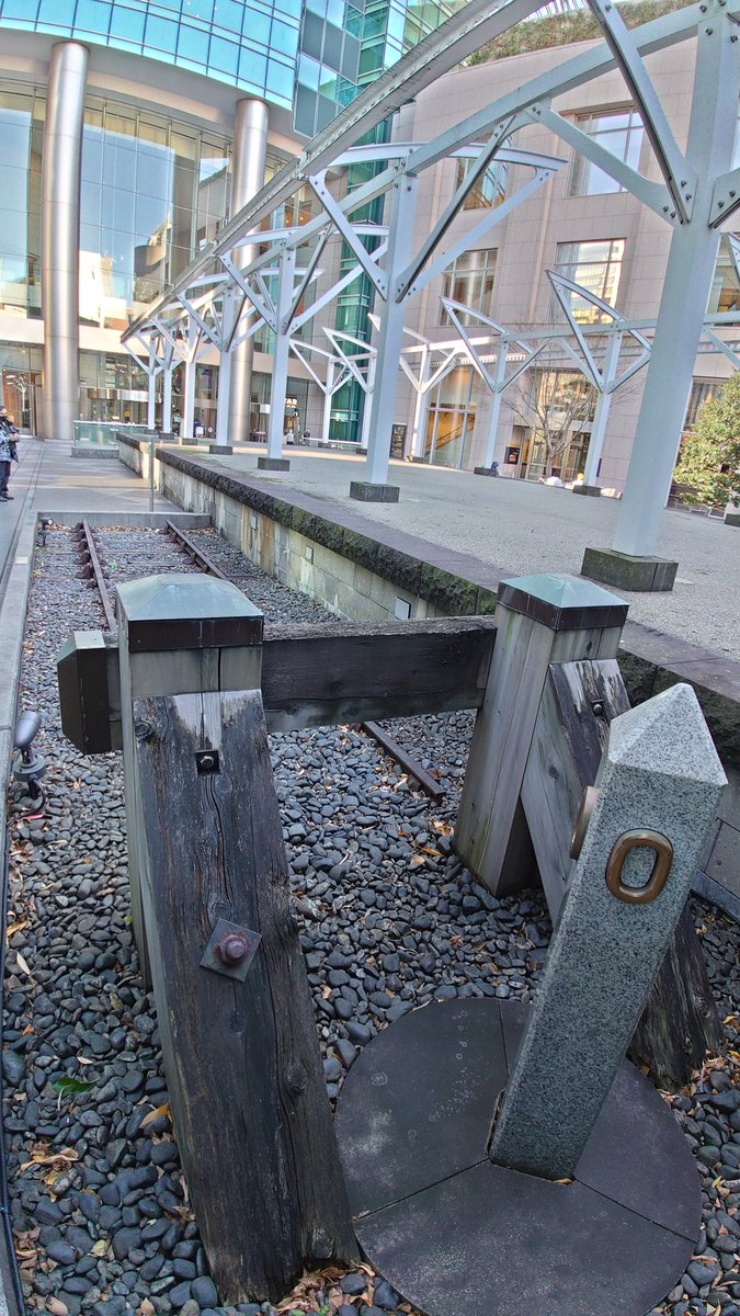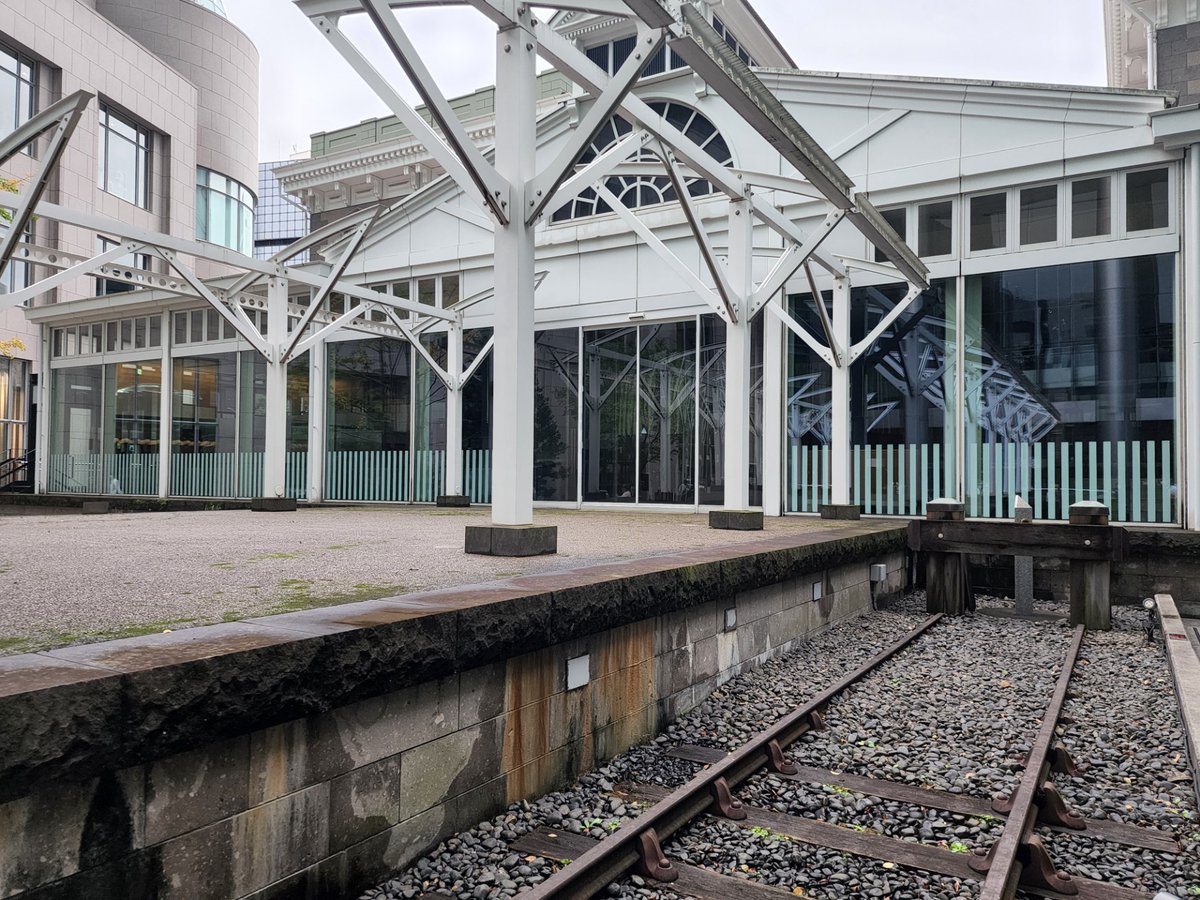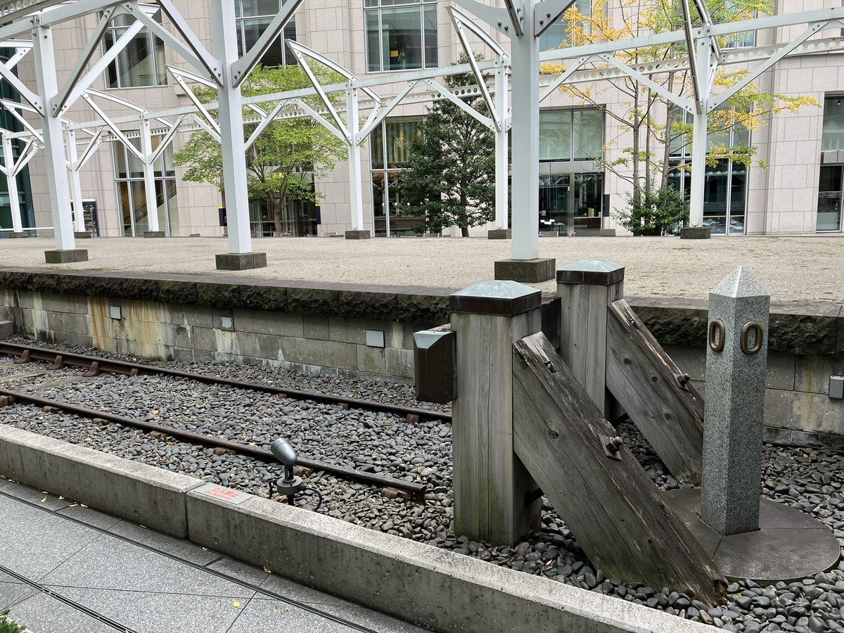 新橋駅から歩いて5分ほど、汐留にある旧新橋停車場。高層ビルに囲まれた一角に、鉄道開業当時のホームや線路、0マイル標識(今でいう0キロポスト)が遺構として存在しています https://t.co/qGHfZWeOqj