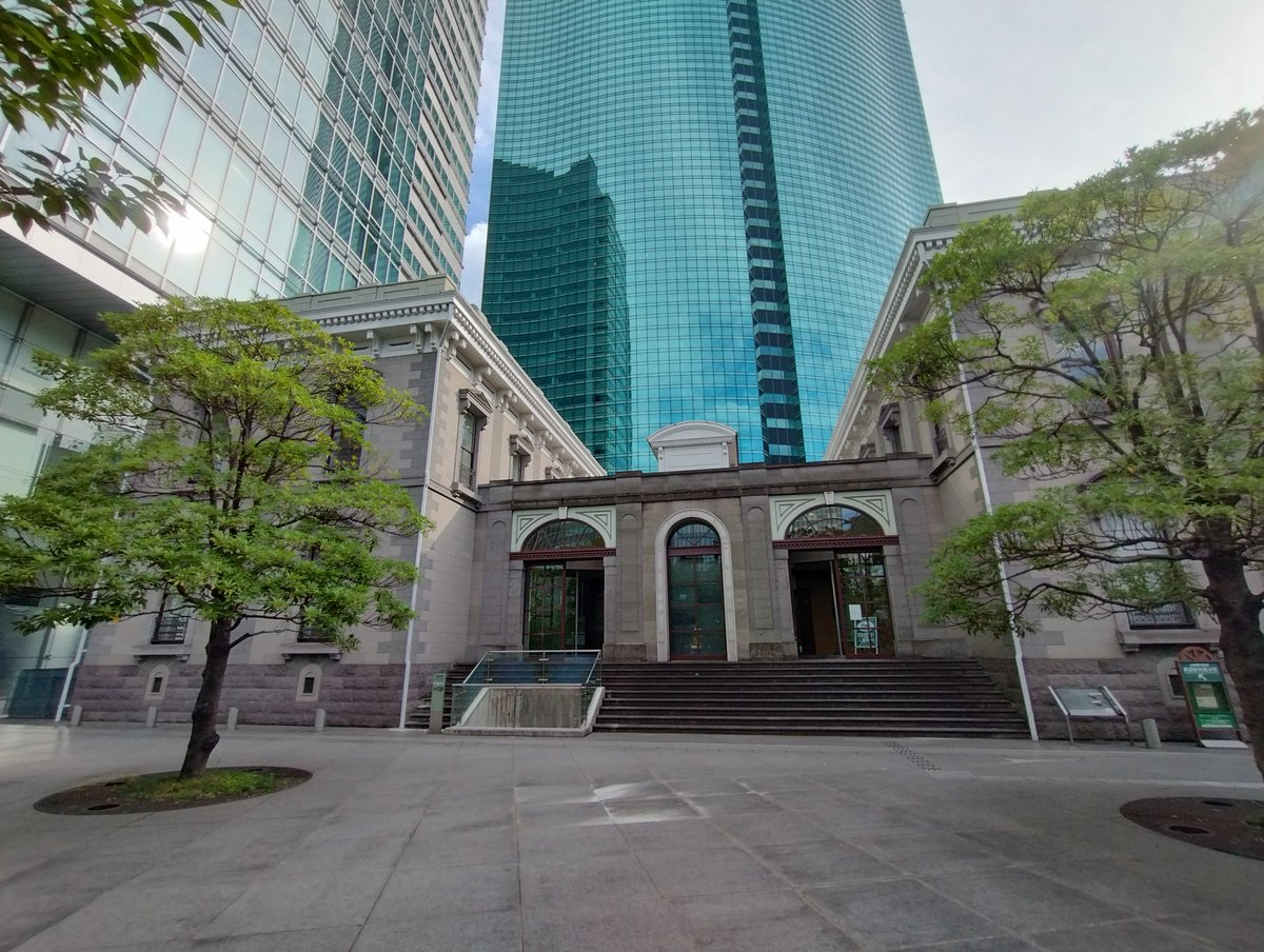 これは三井住友信託銀行を主体と見せかけつつ、実際は真ん中に汐留シティーセンターを写すことで、その反対側にある旧新橋停車場の鉄道起点0哩標識を示唆してるってワケ(ブラタモリの回し者) https://t.co/lmXxamBgdf