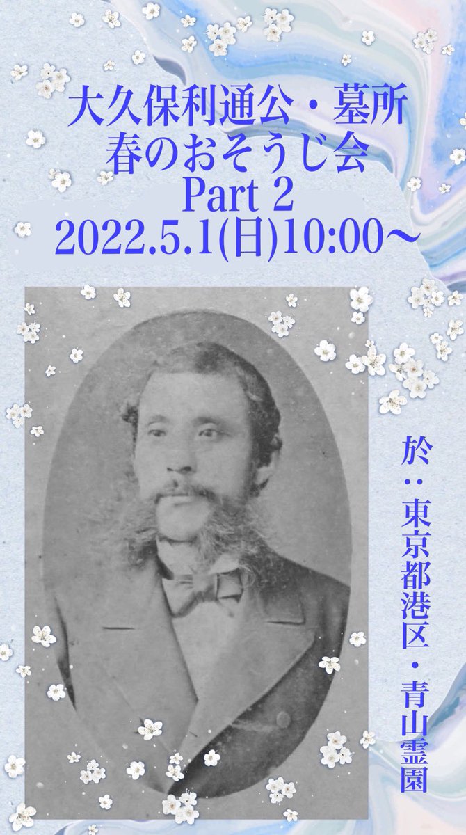 東京・青山霊園の大久保利通公墓所を清掃するボランティア活動を4/24(日)に行います(荒天の場合は5/1に順延)。有志による自由参加の会で当日飛び入り参加も大歓迎。ぜひお力添えください! DMにてお問い合わせいただ… https://t.co/GhHzHwPMG4