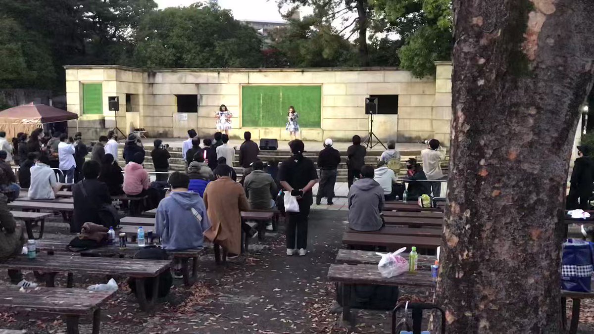 鶴舞公園来たらアイドルさんの野外ライブ(声出しOK)やってたのでちょっと時間までお邪魔しました!