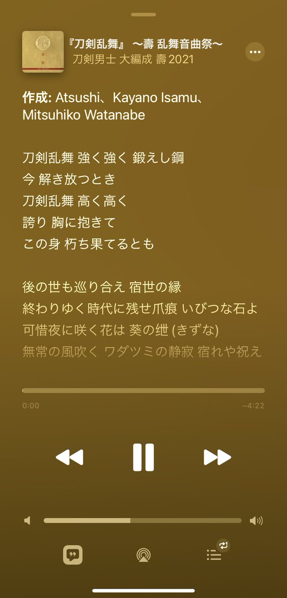 ゲームのBGMだけ消音にして今この曲をAppleMusicで聴きながら刀剣乱舞の大阪城潜ってるけど、わりとテンション上がる(*・ω・)