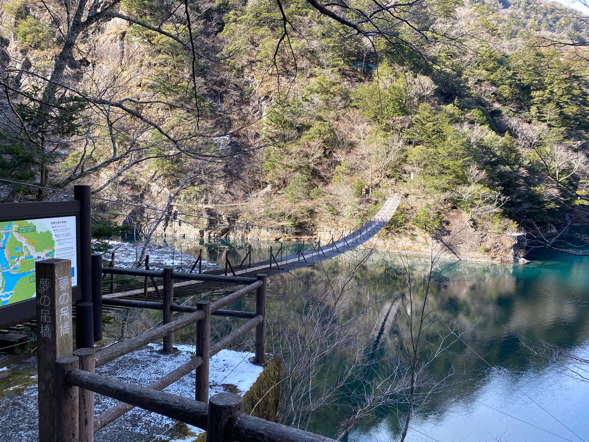 ゆるキャン△の聖地、寸又峡まで行ってきました。夏や紅葉の時期はすごい混んでいますが、冬は結構空いていて夢の吊り橋独り占めでした。コロナ対策と路面の凍結に注意して冬の寸又峡に行ってみてはいかがでしょうか。 https://t.co/A7PkefKqGE