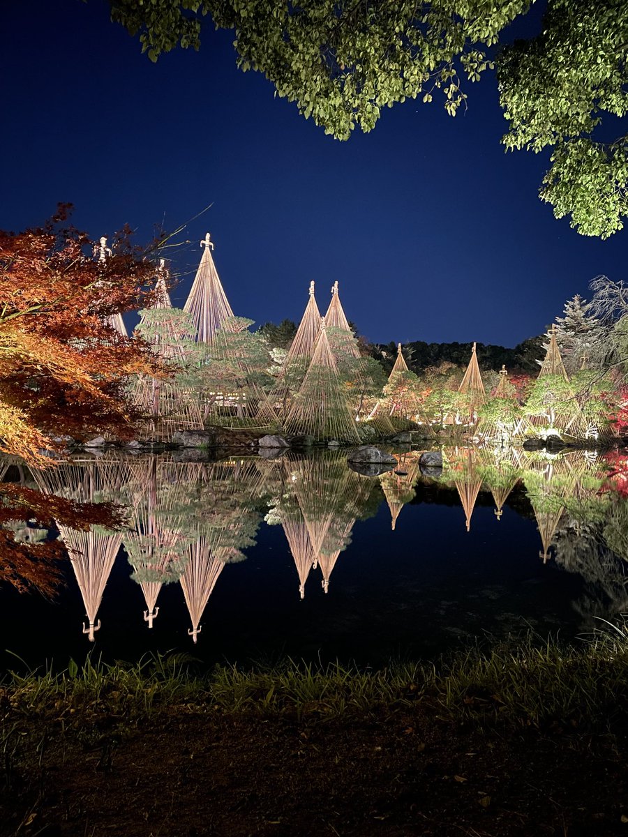 白鳥庭園雪吊りのライトアップ https://t.co/lwWlmB8C3Z