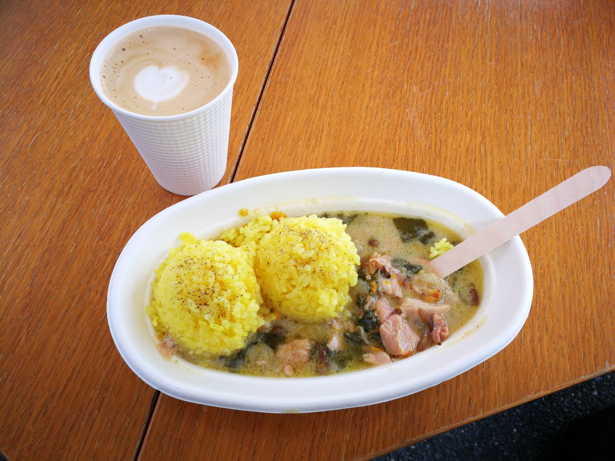 トレンチコーヒーさん @TRENCHCOFFEE2016 のカフェラテとインディゴブルーカレースタンドさんのグリーンカレー https://t.co/8z7YH4GhEx