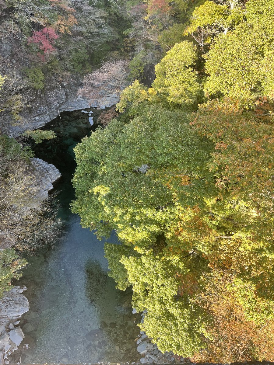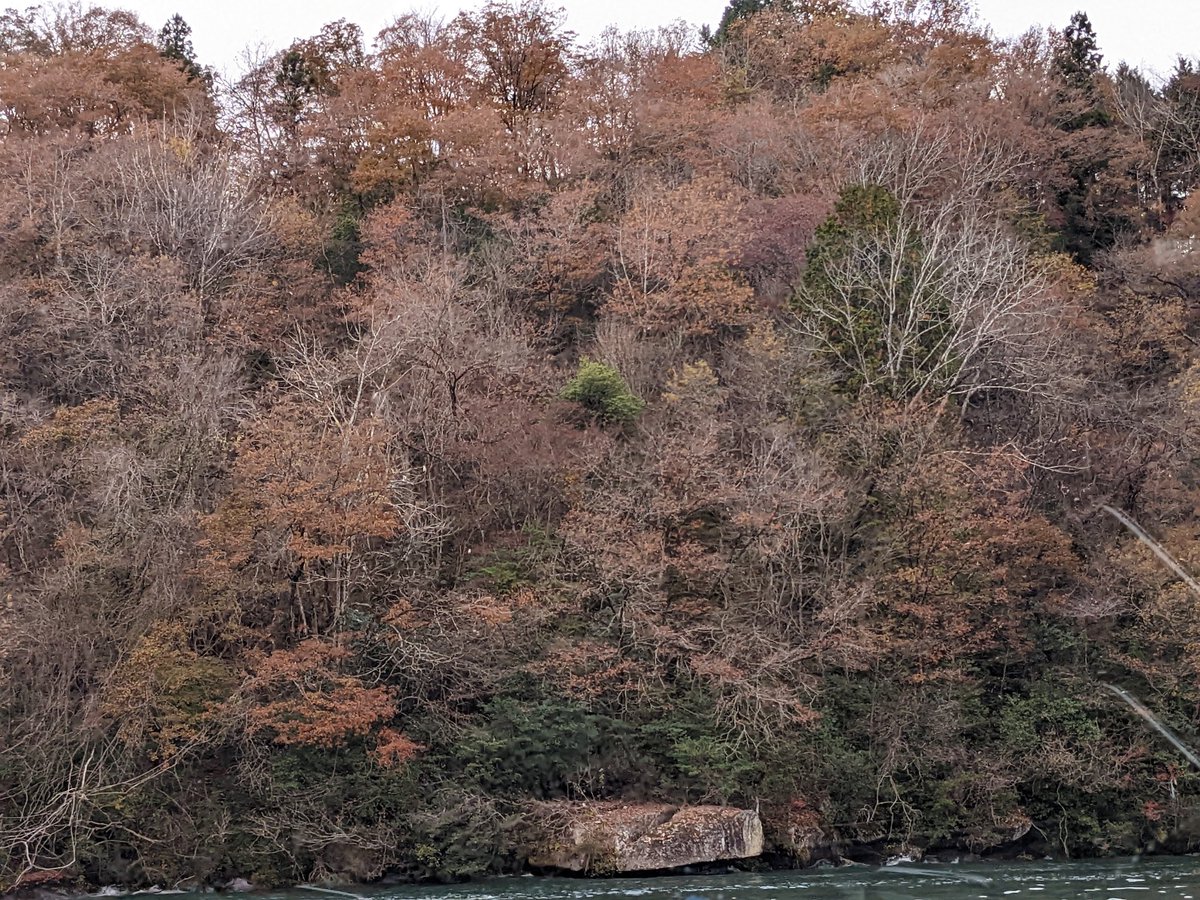 恵那峡は紅葉のピークを過ぎていましたが、綺麗ですよー。遊覧船も朝イチの混む前に乗ったので、待ち時間もほぼ無くて快適。奇岩がいっぱいで面白いな⛴ https://t.co/stVJlaVOdy
