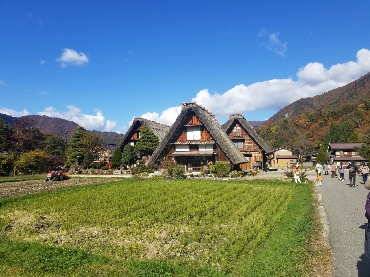 白川郷 9月になると気温はどんどん下がりはじめ、黄金色に染まった稲穂や、風に揺れるススキなど、風情ある日本の秋が訪れます。紅葉は10月中旬頃からはじまり、11月になると村では初霜や初雪の話題が出てくるようになり、雪囲いをして雪に備… https://t.co/M7dVAqTSXU