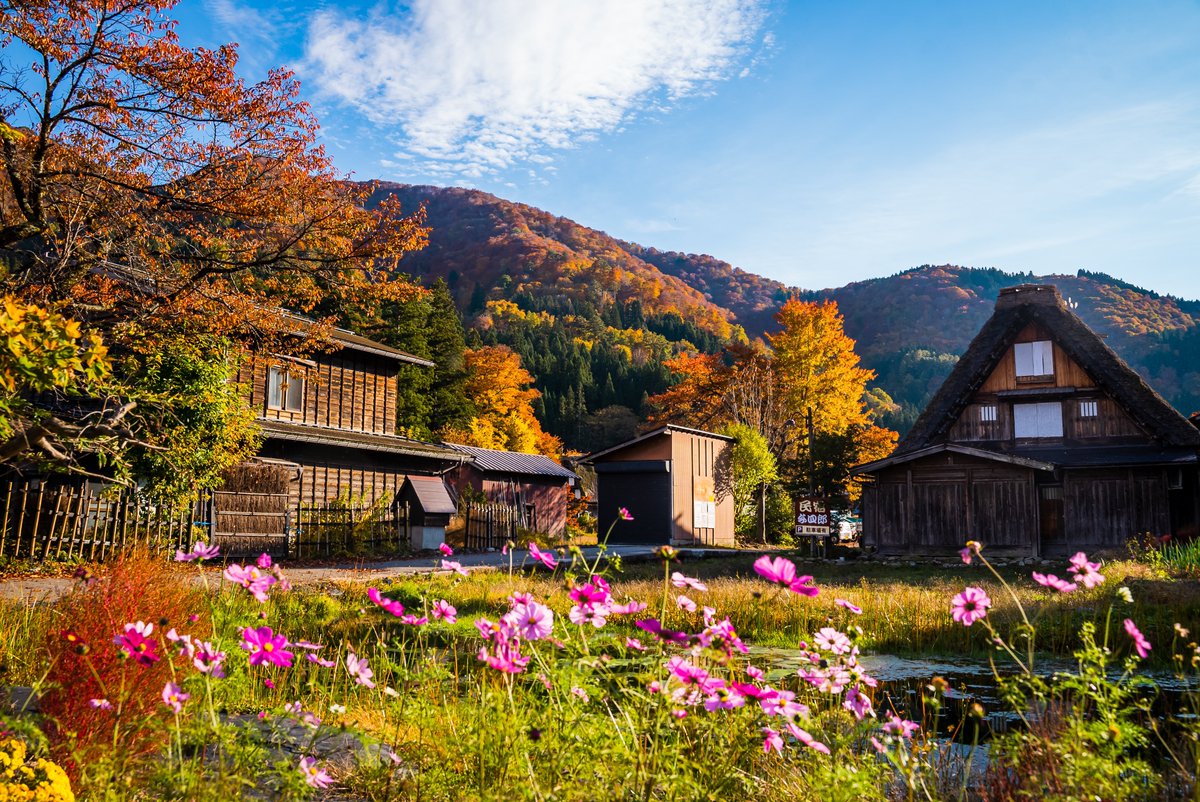 白川郷 9月になると気温はどんどん下がりはじめ、黄金色に染まった稲穂や、風に揺れるススキなど、風情ある日本の秋が訪れます。紅葉は10月中旬頃からはじまり、11月になると村では初霜や初雪の話題が出てくるようになり、雪囲いをして雪に備… https://t.co/veJ1ebR1hF