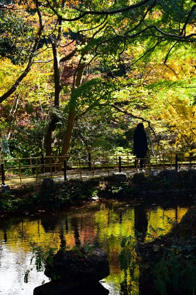庭園の池は早々と散った紅葉が沈み、絶賛落葉中のイチョウが水面を埋め尽くす、綺麗な景色でした!