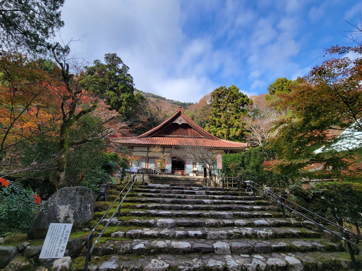 聖宝寺に到着。紅葉期間中はかなり混むこともあるそうだが、この日は紅葉シーズンも終わりに近づいていたためかそれほど人は多くなかった。もみじが綺麗 https://t.co/UYeR3hpL12