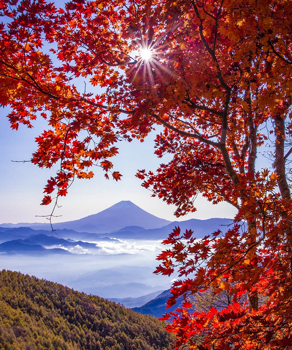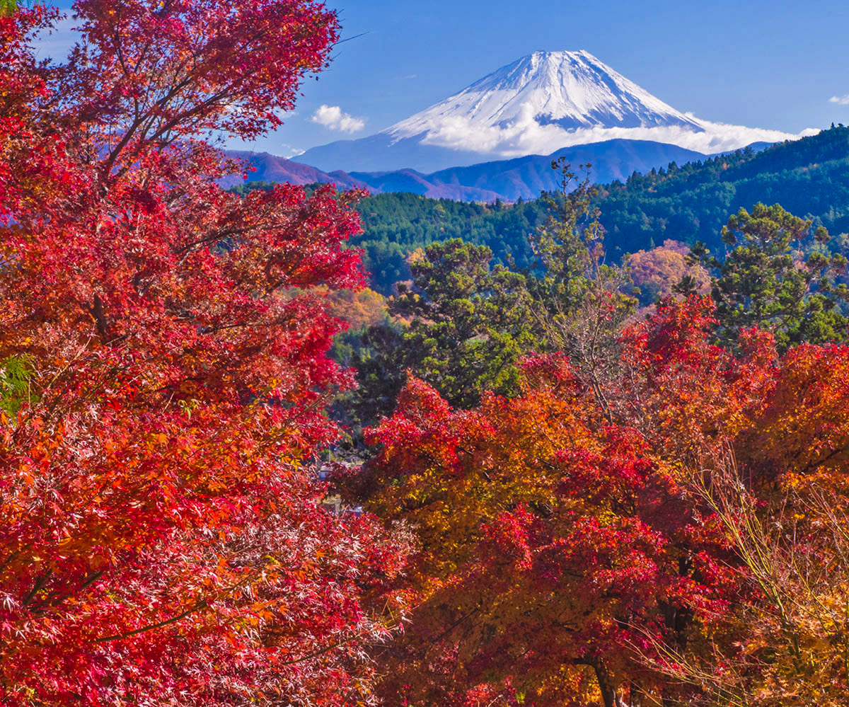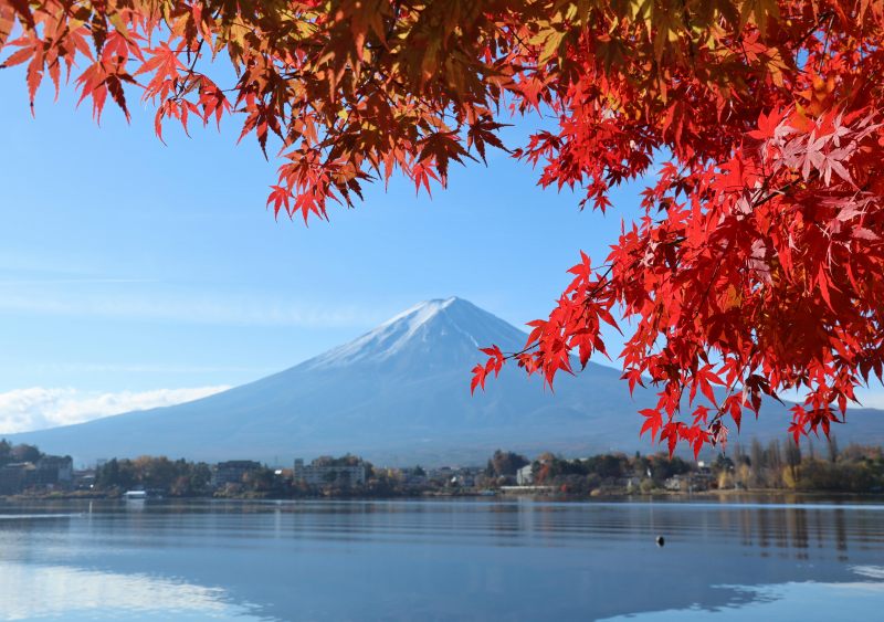 紅葉に囲まれた富士山が絶景ですね