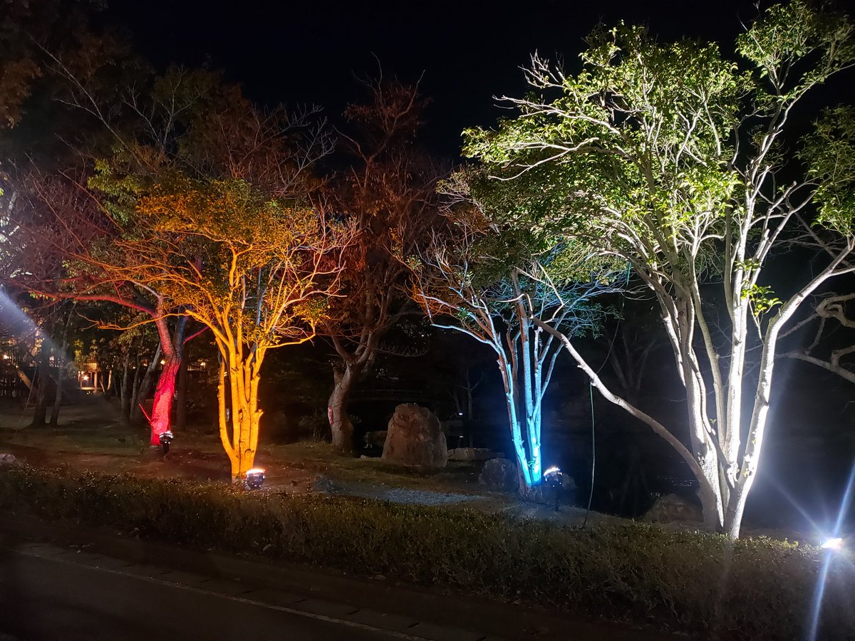 浜松城公園のホテルコンコルド側入口近くでライトアップしてました。紅葉のライトアップは去年やってたけどこれは初めて見た。前からやってたのかな? https://t.co/SD0tLnWR3K
