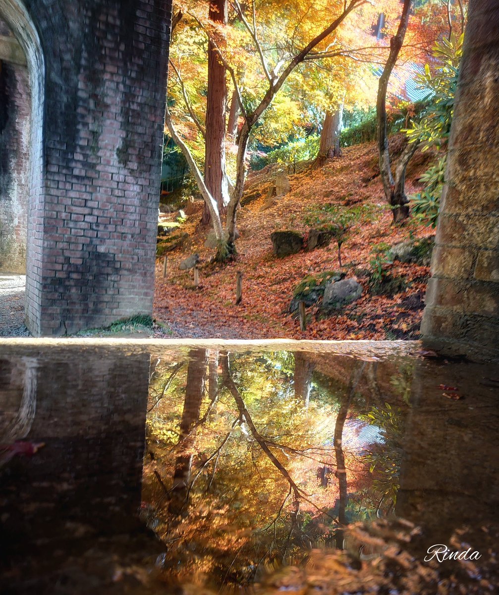 南禅寺水路閣の水たまりに、紅葉が写り込んで綺麗でした。最初気付かず、ちょっと不思議な感じがしました。
