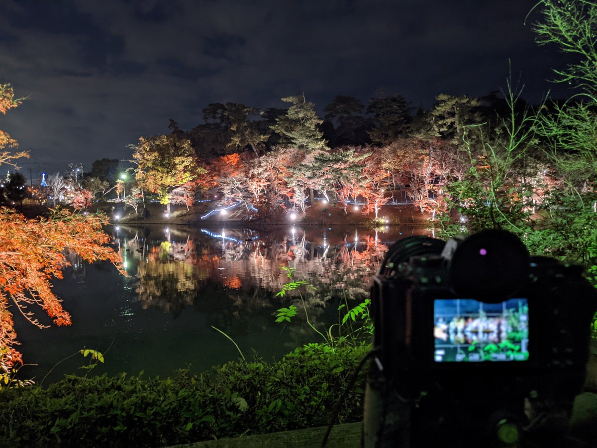 岡崎東公園の紅葉ライトアップなう!\(^O^)/