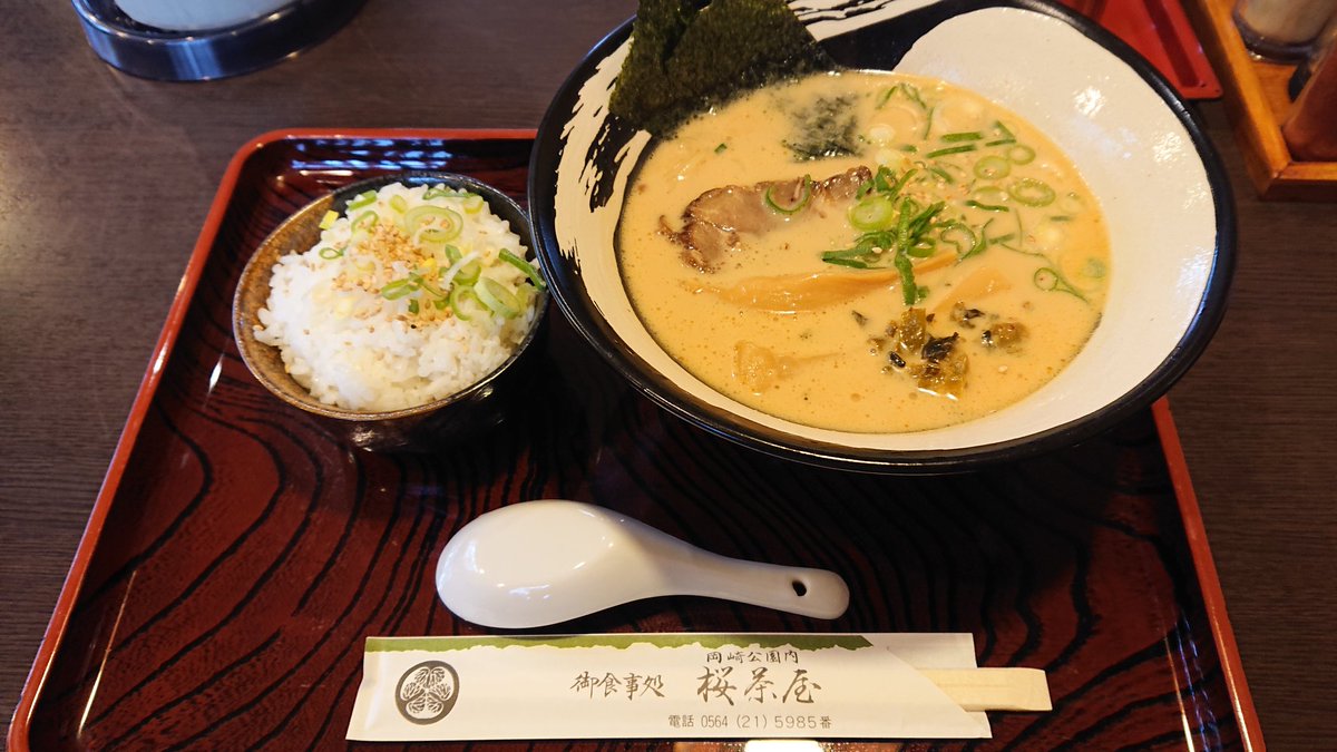 瑞浪のハム工房でモーニングしてから、岡崎公園に行き、桜茶屋さんの城西ラーメンといちかわさんの武将パフェ!