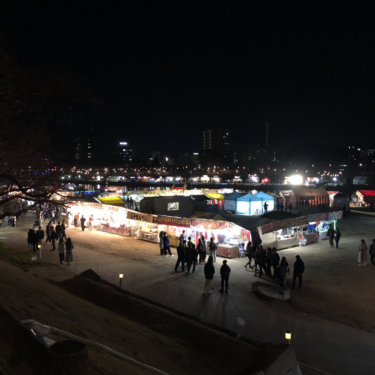 お目当てのキッチンカーがあって、昨晩岡崎公園の桜まつりを覗いたら、桜はまだまだなのにすでに浮かれポンチな雰囲気だった。20時半を回っても乙川の向こうまで人出も照明もけっこうな賑わいだったけど、うまく撮れなかった。 https://t.co/WfIZx8Jo6U
