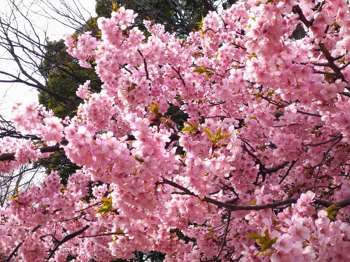 逆光で残念だけど、今年も河津桜の満開見れた☺ https://t.co/NhBc9RRpq6