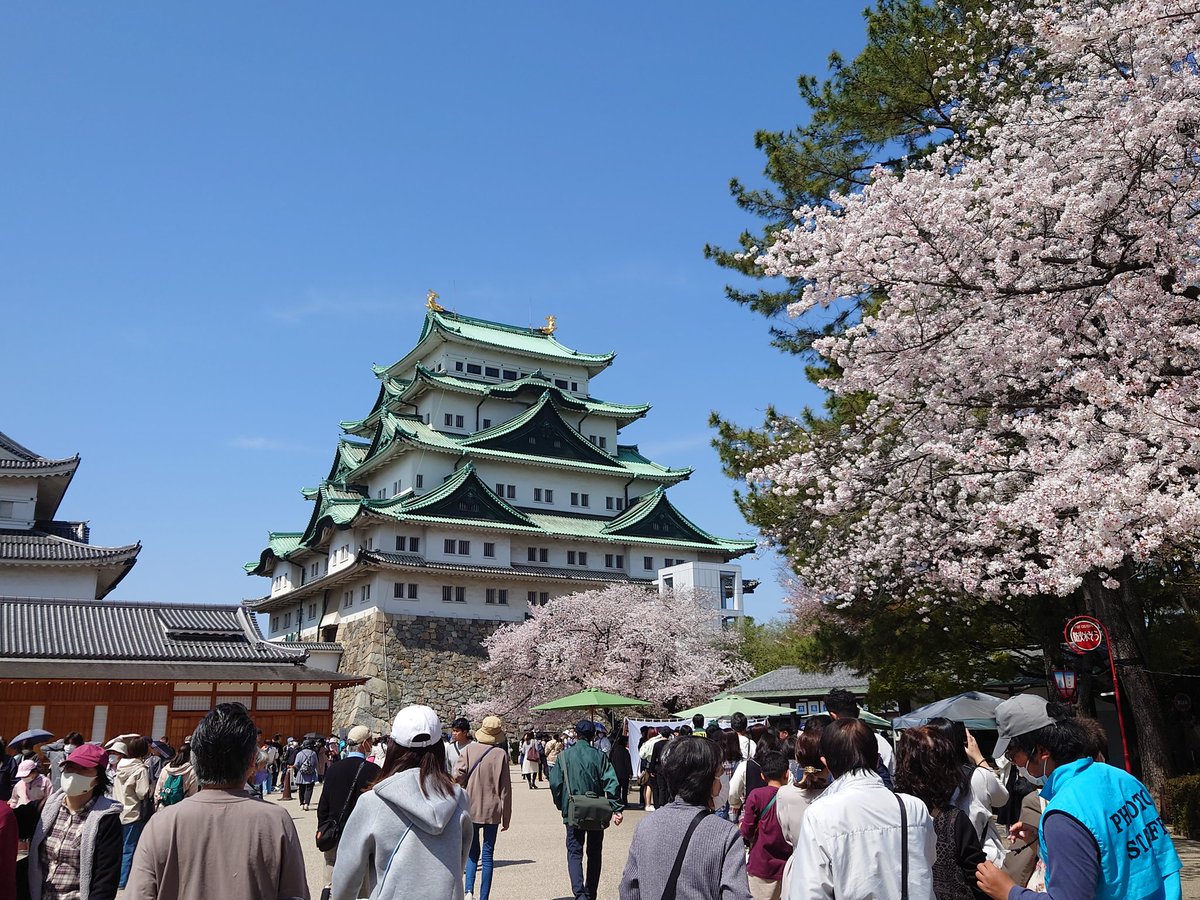 降臨した「金シャチ」にも長蛇の列…桜見ごろの名古屋城に大勢の花見客 密避けるため屋台はテーブル撤去 #SmartNews https://t.co/B833YqGsEw