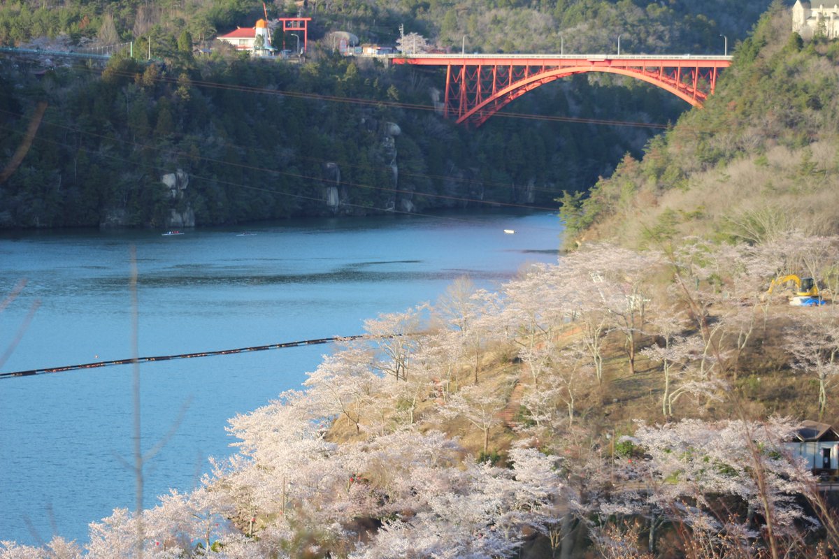 桜はまだまだですが、満開時には、写真の様にダム湖と桜の景観が楽しめ多くの方が訪れます^ ^… https://t.co/cHP28F6Y40
