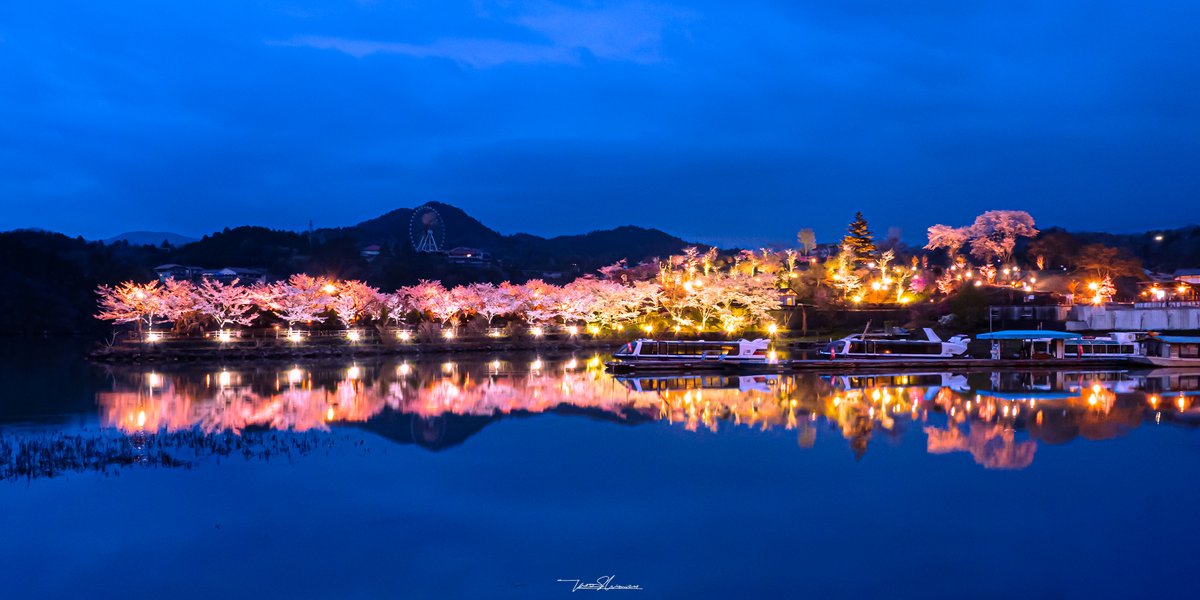夜間桜のライトアップがされるとのことで恵那峡へ。想像していた以上の美しい景色を楽しませて頂きました。今年のライトアップ期間は2021年4月11日まで。時間は18:00~21:00です。 https://t.co/pYrqYHHbkO